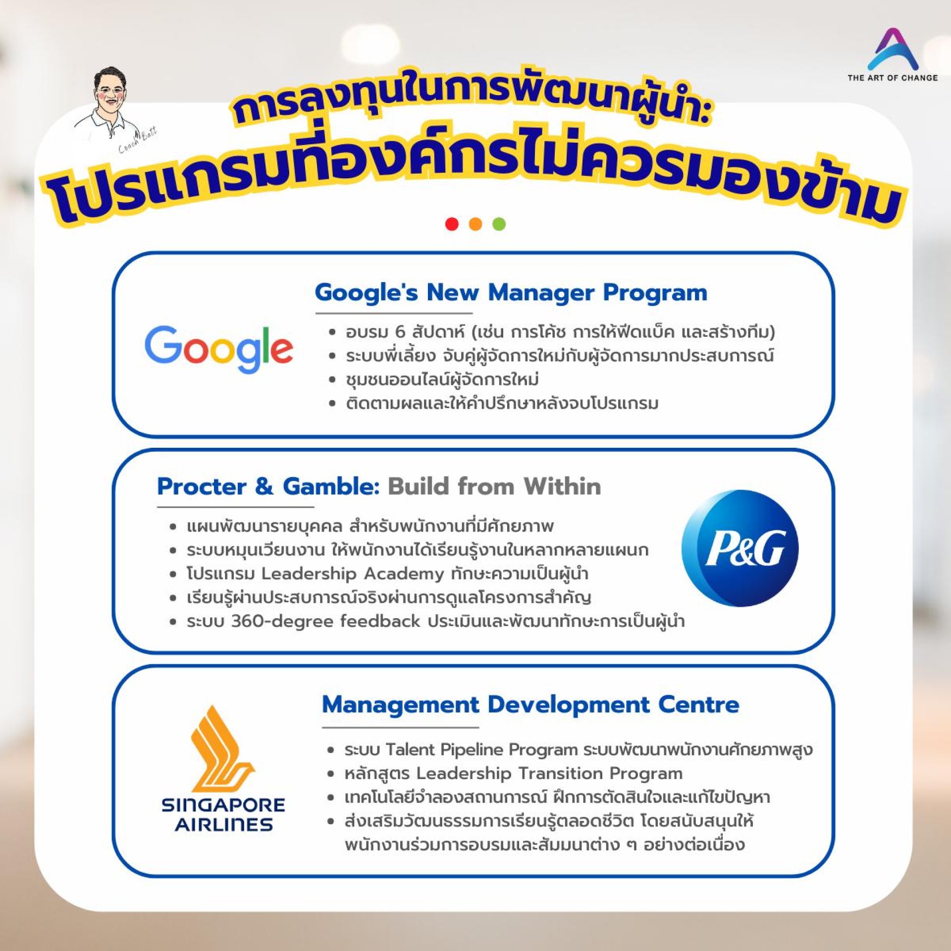 ทั้งสามองค์กรนี้ แสดงให้เห็นถึงความสำคัญของการลงทุนในการพัฒนาผู้นำ
