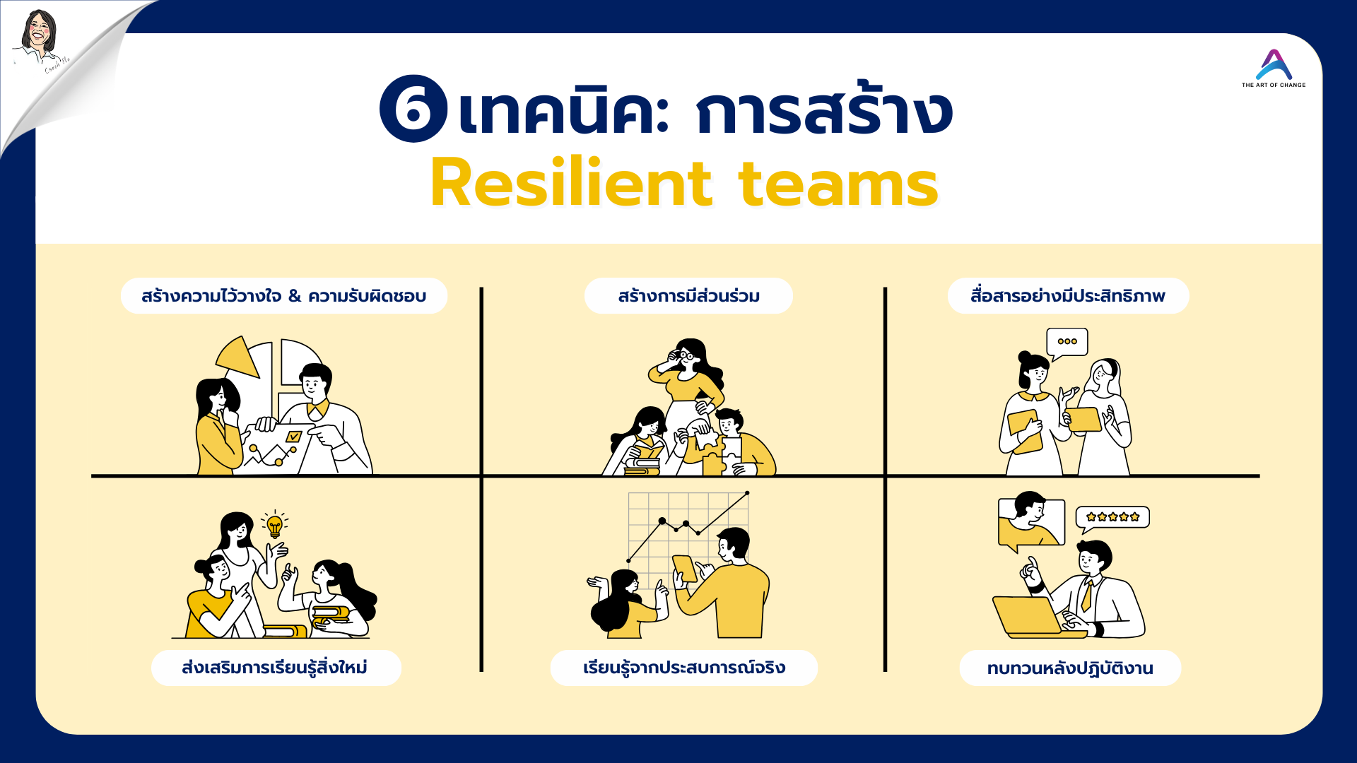 การสร้างทีมที่แข็งแกร่ง พร้อมเผชิญกับความท้าทาย (Resilient teams) ทำได้ดังนี้: