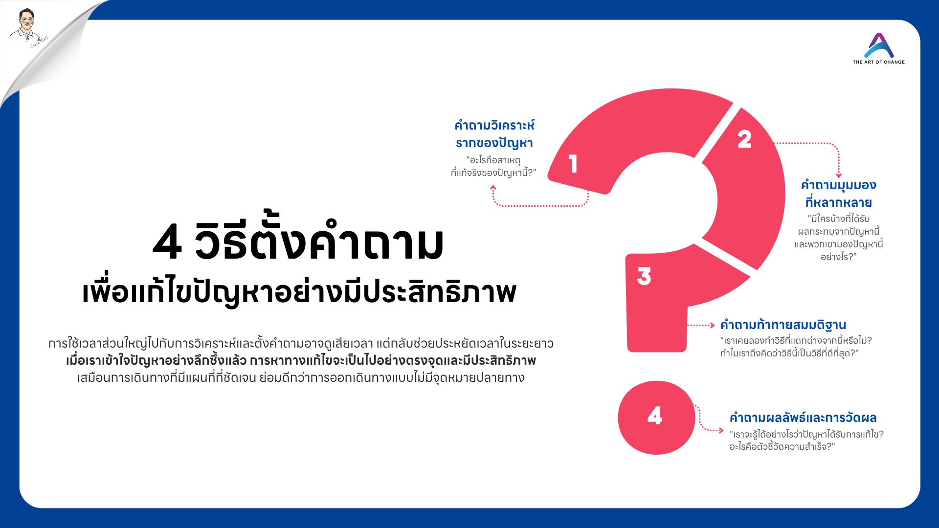 การตั้งคำถามที่ถูกต้องและครอบคลุมจะช่วยให้เราเห็นมุมมองที่หลากหลายและเข้าใจรากเหง้าของปัญหาได้ดียิ่งขึ้น
